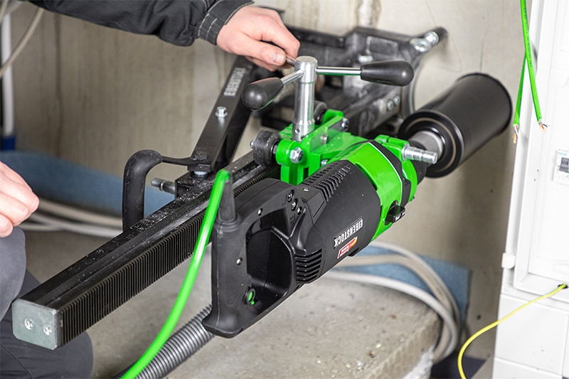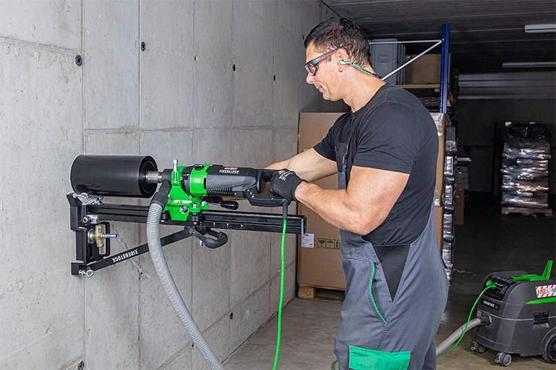 - Ручное и стационарное сверление отверстий в стенах и потолках систем водоснабжения, отопления и вентиляции, где мокрое сверление невозможно (в случаях, когда сверление с использованием воды невозможно)